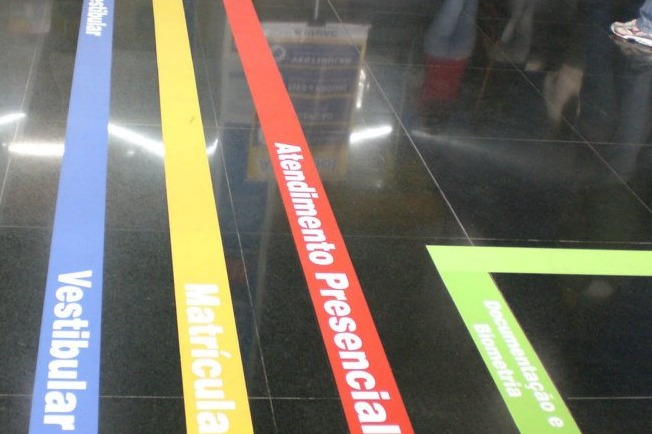 A sinalização de solo em adesivo se refere a marcações ou sinais que são aplicados diretamente no solo, geralmente em forma de adesivos, para comunicar informações importantes, orientar o tráfego, alertar para possíveis perigos ou direcionar as pessoas em ambientes diversos, como estradas, estacionamentos, fábricas, aeroportos, shoppings e muito mais.